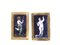 in rame smaltato e lumeggiato in oro entro piccole cornici modanate in bronzo dorato, raffiguranti due putti festanti,