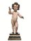 in legno policromo raffigurante Gesù Bambino, rappresentato completamente nudo in posizione stante con il braccio destro alzato in atto di benedire, alt. cm 47, montato su base in legno di epoca posteriore