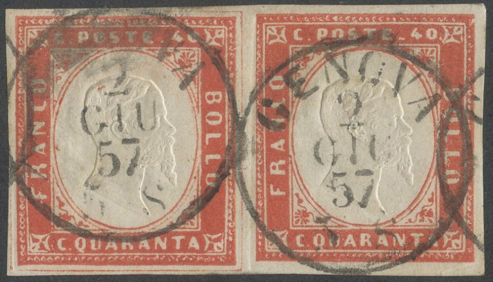 Lot 135 | Sardegna - 40 cent. vermiglio scuro Pos.12 in coppia.