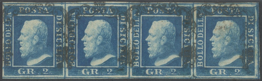 Sicilia - 2gr. Azzurro vivo I tav. in striscia di 4