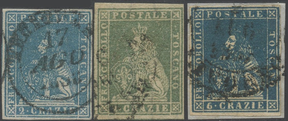 1851 - 2cr. n.5, 4 cr. n.6 e 6 cr. n.7 tutti di ottima qualità. Cat. 1.225. (A+)