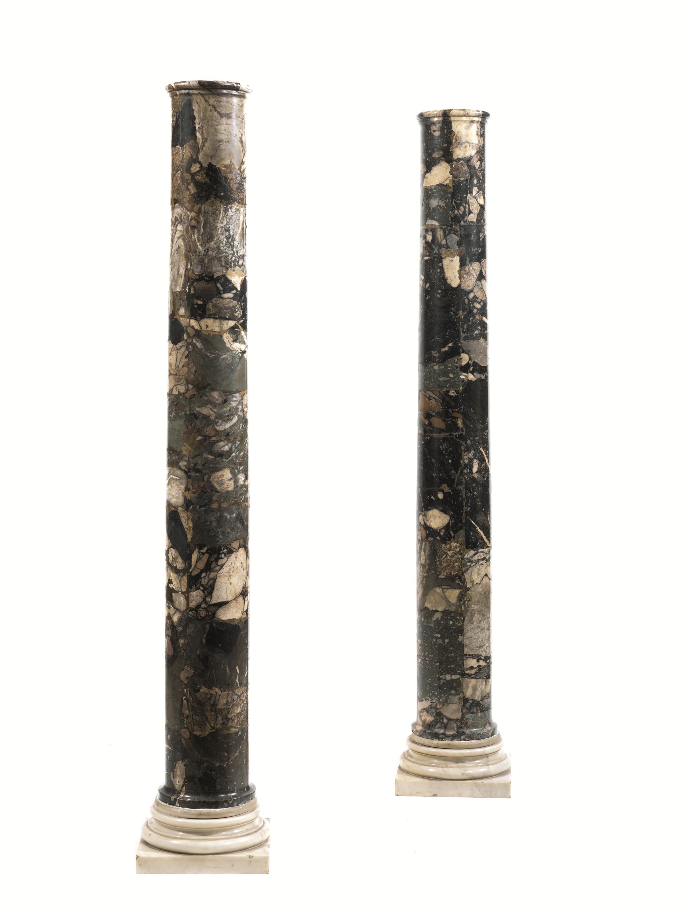 Coppia di colonne, sec. XVIIIlistrate in breccia di marmo africano, su basi...