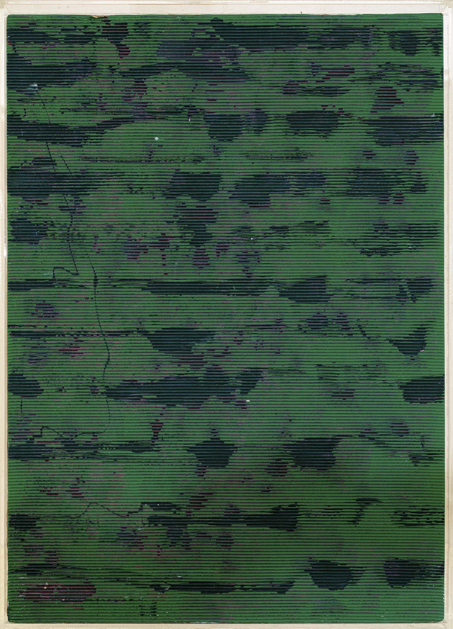 tecnica mista su cartone ondulato entro teca di plexiglass cm. 70x50x3,5