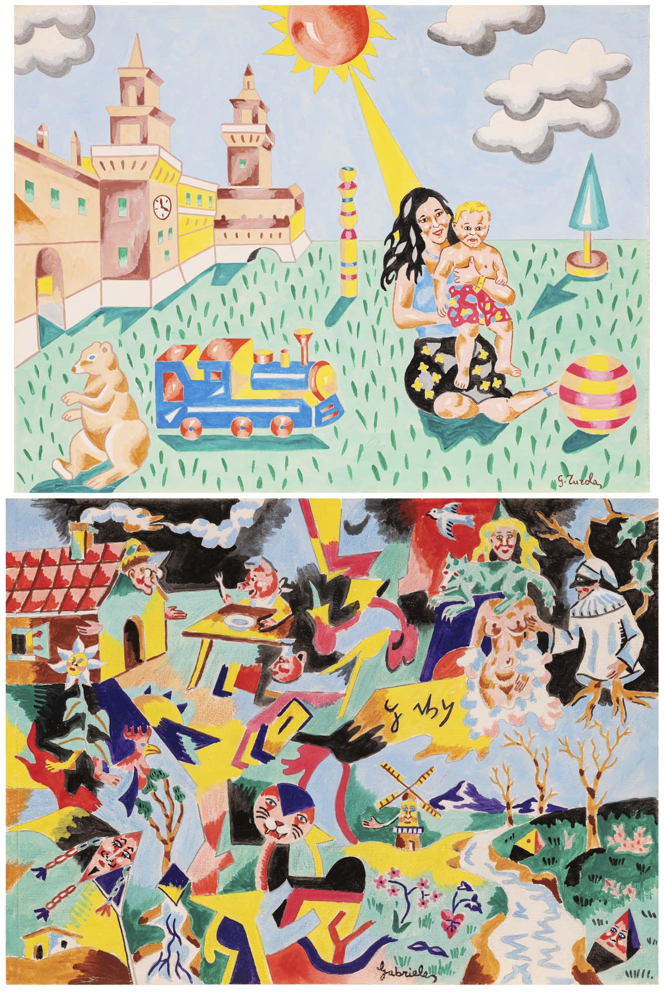 lotto di 2 tecniche miste su carta cm. 24x32,5 cad.