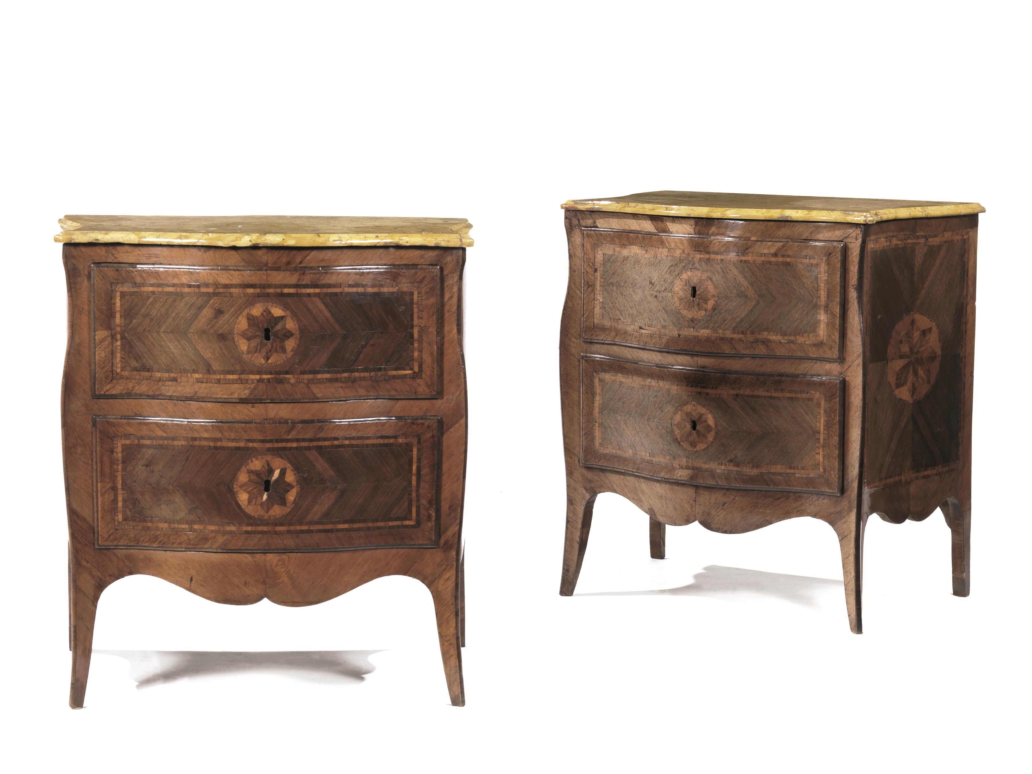 Coppia di piccoli cassettoni, Napoli, metà sec. XVIIIin noce intarsiato in...