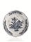in porcellana dipinta in policromia blu con bordo sagomato; cavetto decorato con grande scena di paesaggio e due gruppi di uccelli in volo, tesa filettata in blu e decorata da tre grandi fregi floreali. Retro decorato da due elementi vegetali, diam. cm 32