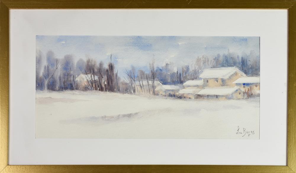 Luciana Bey LA NEVE SUI TETTI, 1995 acquerello su carta, cm 23x48 firma e...