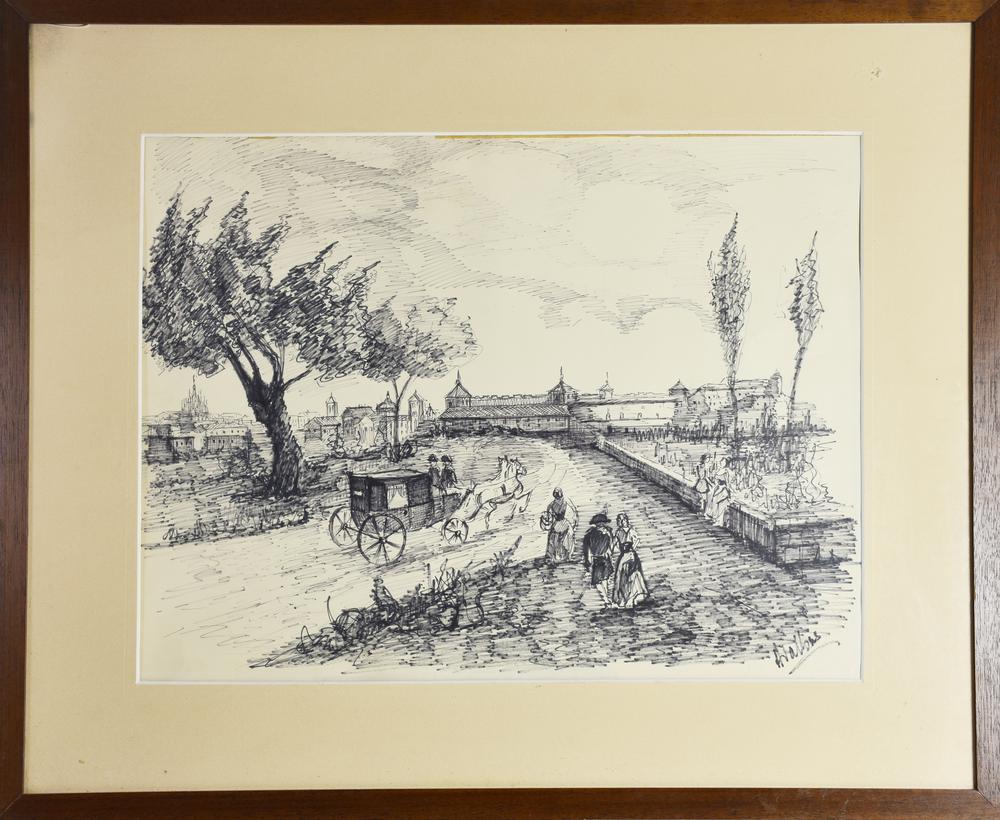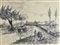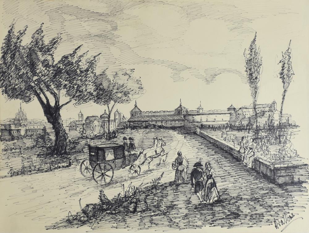 Ignoto VEDUTA MILANESE pennarello su carta, cm 48x63 firma