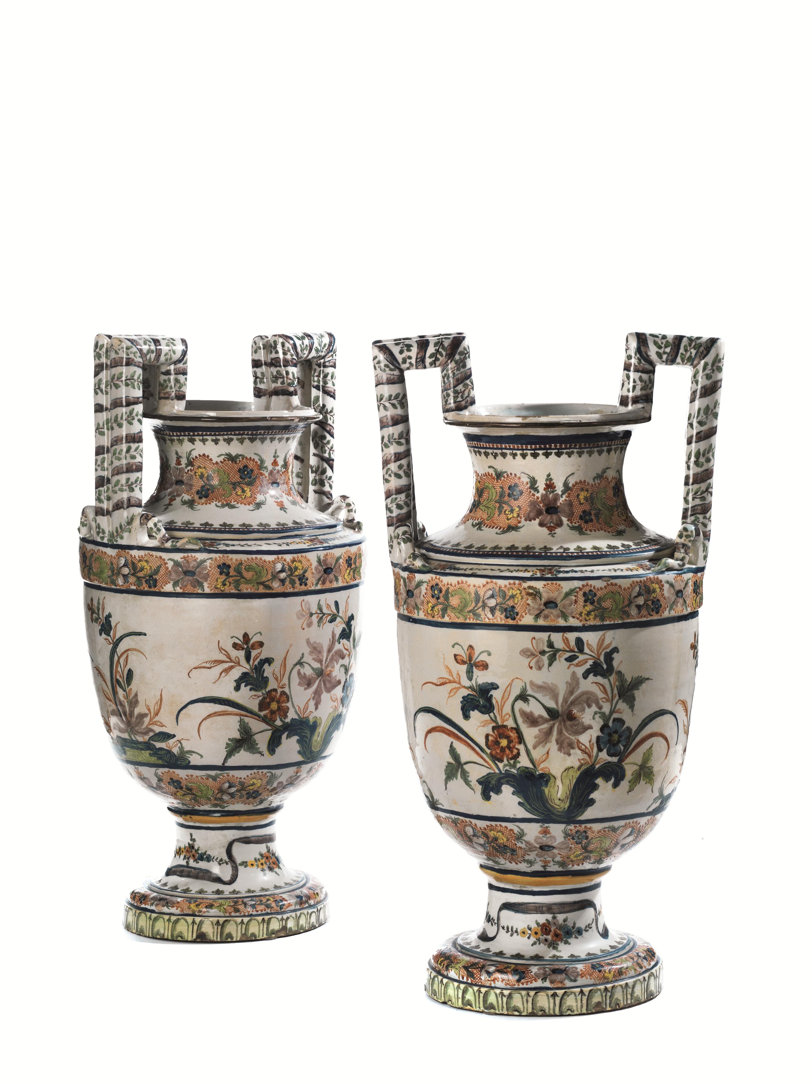 COPPIA DI VASI, FAENZA, MANIFATTURA FERNIANI, FINE SECOLO XVIII-INIZI SECOLO XIX