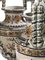 in maiolica dipinta in policromia, corpo cilindrico poggiante su alto piede a base rotonda. Il collo sottile e cilindrico si apre in una larga bocca dall’orlo estroflesso dal quale si dipartono due alte anse a doppio bastoncello che scendono fino alla spalla.