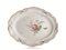 in maiolica decorata a piccolo fuoco in policromia con verde, porpora, giallo, bruno di manganese nei toni del marrone, di forma ovale con orlo mosso profilato in bruno, decorato con un festone a nastri intrecciati intervallato da corolle floreali sulla tesa ed un mazzetto alla “rosa” dipinta a gabarit al centro, cm 34x27