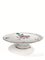 in maiolica decorata a piccolo fuoco in policromia con rosso, verde, giallo, bruno di manganese, alto piede svasato e orlo esalobato profilato in bruno, decoro con motivo floreale alla “rosa contornata” con un grosso mazzo in posizione decentrata rispetto al fondo e rametti sparsi di contorno. L’ornato si inserisce nella gamma del Finimento n. 2 a porpora, come si riscontra sovente su pezzi affini siglati “F.2”, diam. cm 30.