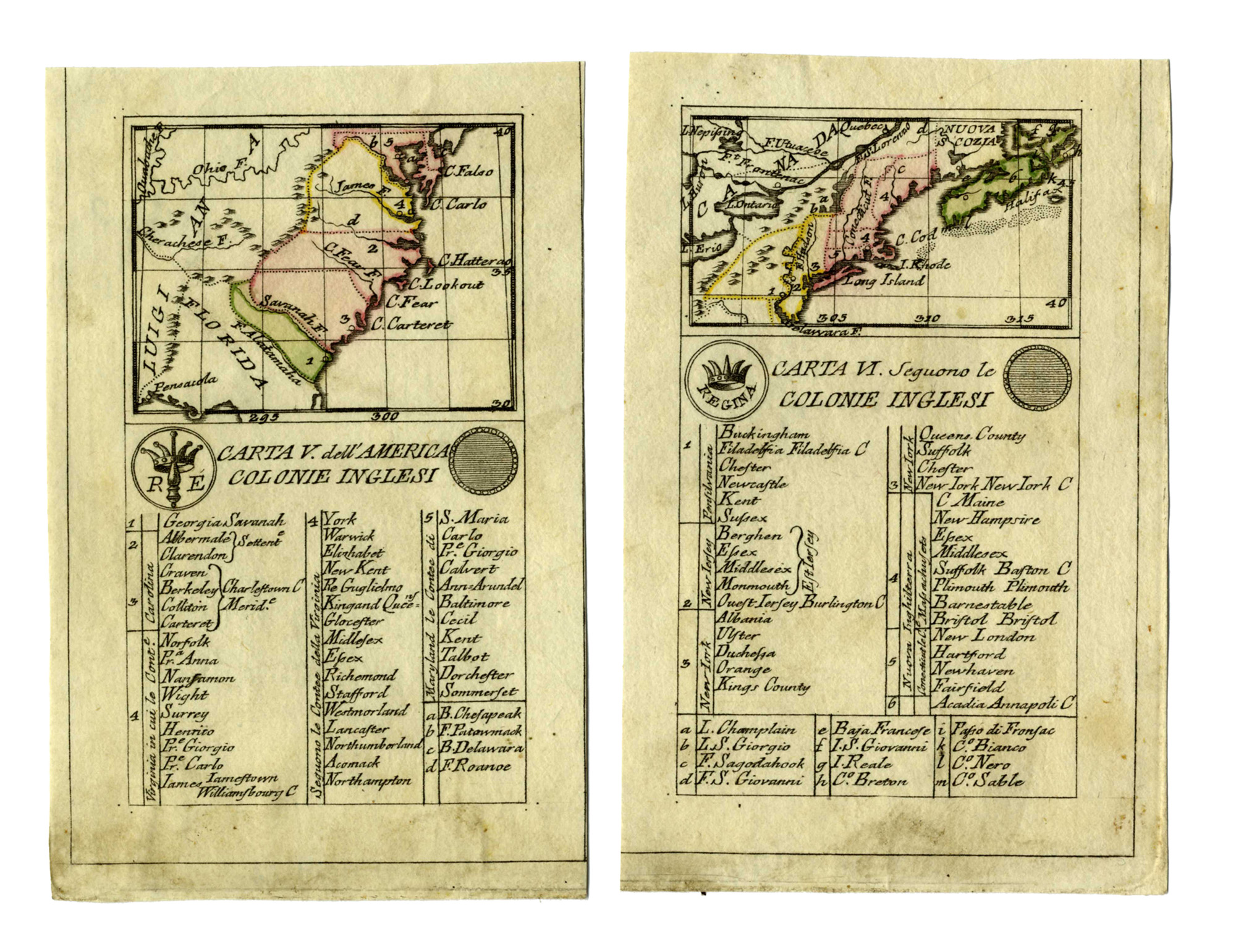 Agostino da Rabatta, Giovanni de Baillou, Aniello Lamberti, Carta V. dell'America. Colonie inglesi / Carta VI. Seguono le colonie inglesi. In Firenze, 1779.