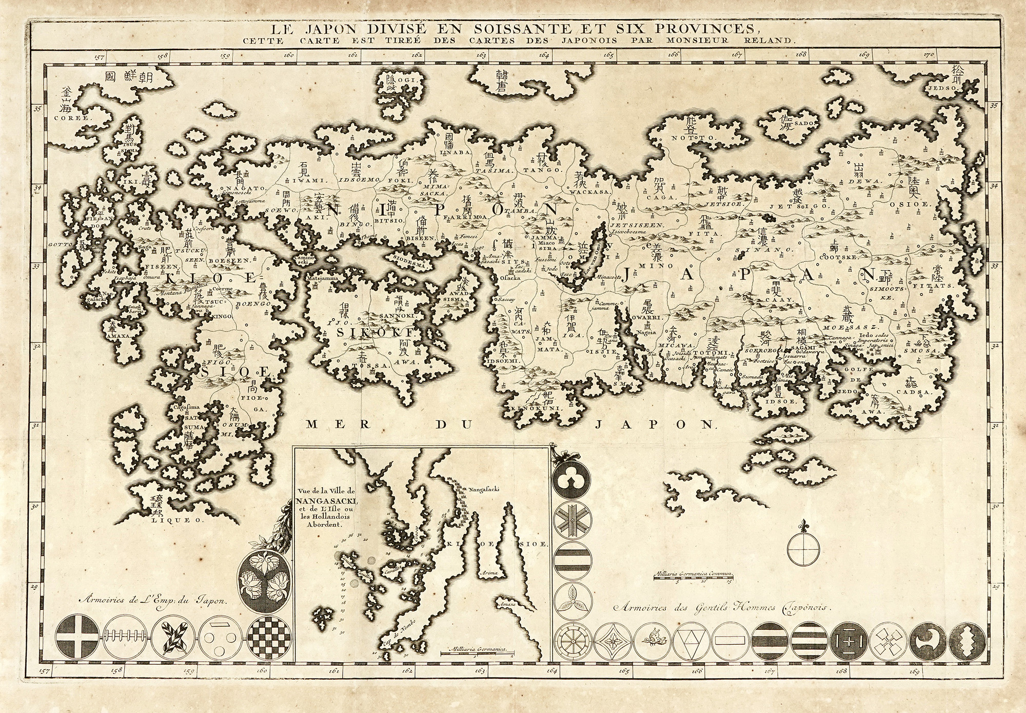 Hadrian Reland, Le Japon divisé en Soissante et Six Provinces, cette carte est tirée des cartes des japonois par monsieur Reland. Amsterdam: Jean-Frederic Bernard, 1715.