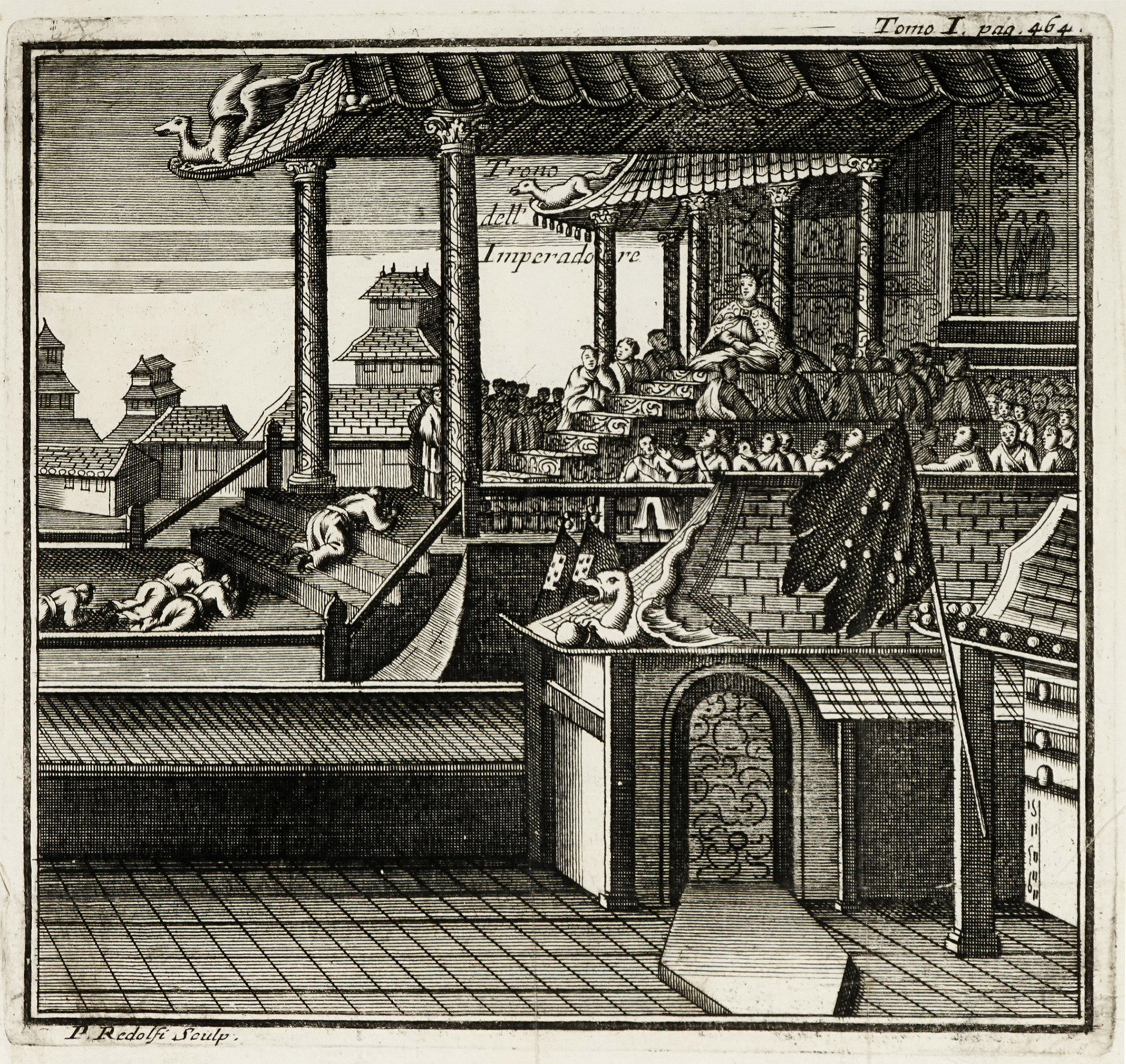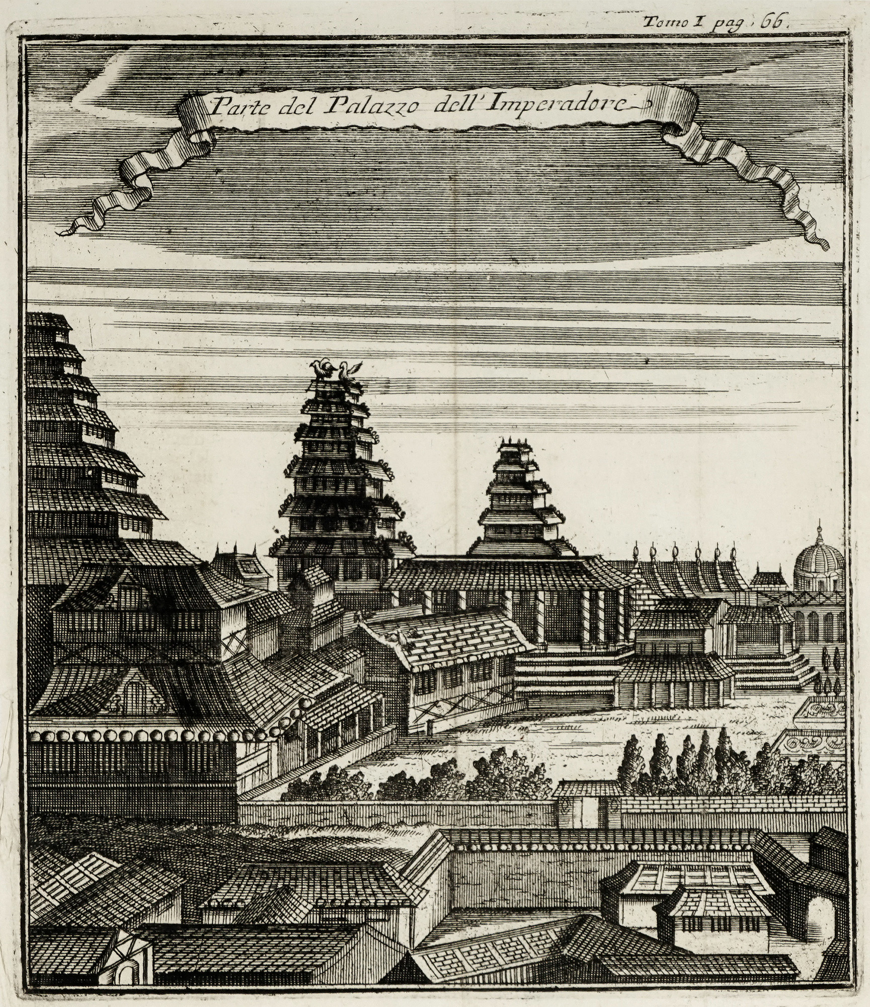 mm 308x450. Foglio: mm 342x480. Esemplare senza indicazione di tomo e pagina, dalla I edizione pubblicata nel 1715 di Jean-Frédéric Bernard, Recueil de voyages au nord: contenant divers mémoires très utiles au commerce & à la navigation... opera in 10 volumi che vide numerose edizioni successive. In precedenza la mappa di Reland era stata pubblicata in due versioni come mappa autonoma, dal suo stampatore di Utrecht, Wilhelm Broedelet e dall'editore specializzato in mappe Otten. Seguirono adattamenti e ristampe. La carta fu tradotta in francese con il titolo Le Japon divisé en soissante et six provinces e inserita come mappa aggiuntiva nel Recueil de voiages au Nord, venne poi inclusa anche nell'Atlas Historique in sette volumi di Henri Abraham Chatelain nel 1719. I legami di Hadrian Reland con la compagnia olandese delle Indie Orientali facilitarono la sua conoscenza delle mappe xilografiche giapponesi, in particolare dovette avere presenti quelle di Ishikawa Ry?sen, da cui attinse ampiamente per le sue numerose mappe del Giappone, di cui questo esemplare è probabilmente il primo. Vi figurano in basso gli stemmi della nobiltà giapponese, compreso quello dei Tokugawa. In basso al centro si trova un riquadro con la mappa dell'approdo marittimo a Nagasaki, l'unico porto in cui agli stranieri era consentito l'ingresso dal 1639 al 1859: sono riportati alcuni dati di scandaglio e la posizione delle isole all'interno del porto. La mappa di Reland influenzò la cartografia seguente in mappe simili di Chatelain e Seutter, sia in termini cartografici che nell'uso dei caratteri giapponesi per i nomi dei luoghi insieme alle loro allitterazioni occidentali. SI AGGIUNGONO: Raccolta completa delle sette tavole di corredo a Jean Crasset, La storia della chiesa del Giappone. Traduzione dal francese di Selvaggio Canturani. Venezia, nella Stamperia Baglioni, 1722. Acquaforte. mm 195/235x167/275. Sette tavole raffiguranti abiti e cerimonie dei giapponesi, il Palazzo dell'Imperatore e le torture inflitte agli evangelizzatori cristiani./ Pierre Jartoux (1668-1720) [da], Plante de Gin-seng, Incisione in controparte dalla tavola nel volume Lettres édifiantes et curieuses, 1713, redatte dal padre gesuita missionario botanico e matematico Pierre Jartoux. (9) OPERA 1: Esemplare integro con margini come in origine, irregolare l'estremità di quello inferiore resecata di pochi millimetri. Traccia di pieghe editoriali da inserimento in volume, breve brachetta al verso. Lieve ingiallimento del foglio. OPERA 2: Tavole con segni di piegatura da inserimento in volume. Tracce d'uso e minimi difetti. OPERA 3: Traccia di alcune pieghe e d'uso.