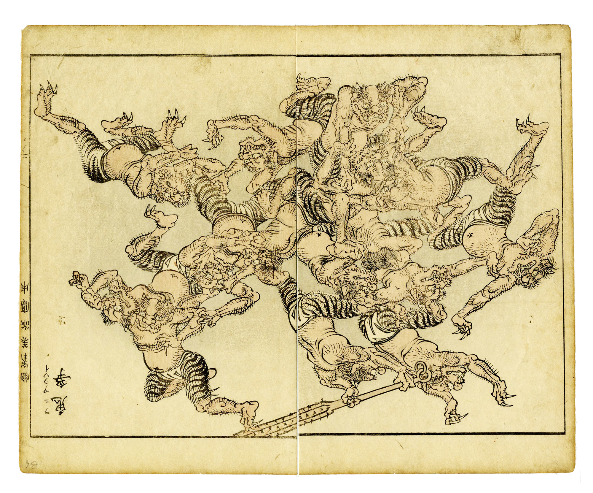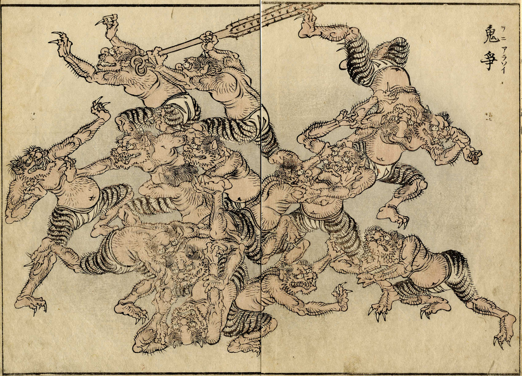 Tanaka Shosaburo (Tanaka Yuho), Lotta di demoni (Yokai). Meiji era (1890).