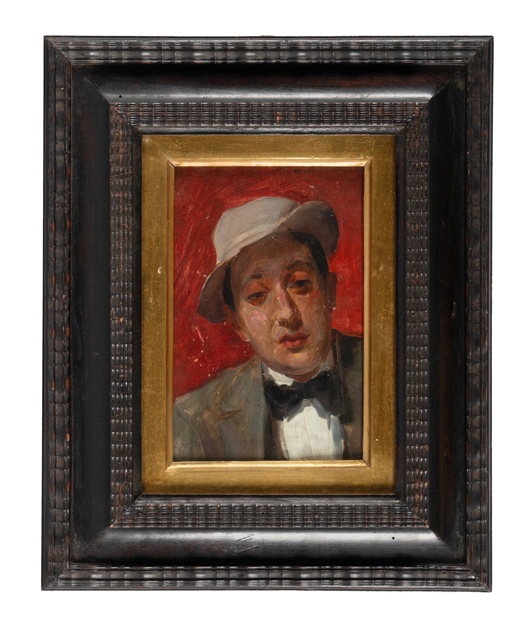 Olio su tavoletta. cm 23x15,5. Firmato in alto a destra. Titolato a matita in basso a sinistra. Iscritto "Marfori Savini Autoritratto" al verso della tavoletta. (1) In elegante cornice nera con vetro: cm 42,5x34,5. Cadute di colore sparse, concentrate sul margine sinistro. Buona conservazione.