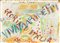 Acquerello, pastello, penna e inchiostro di china su carta. mm 414x570. Firma in alto al centro. (1) Il foglio è applicato a un secondo foglio. I margini presentano varie criticità e sono presenti dei piccoli forellini e altri segni d'uso.