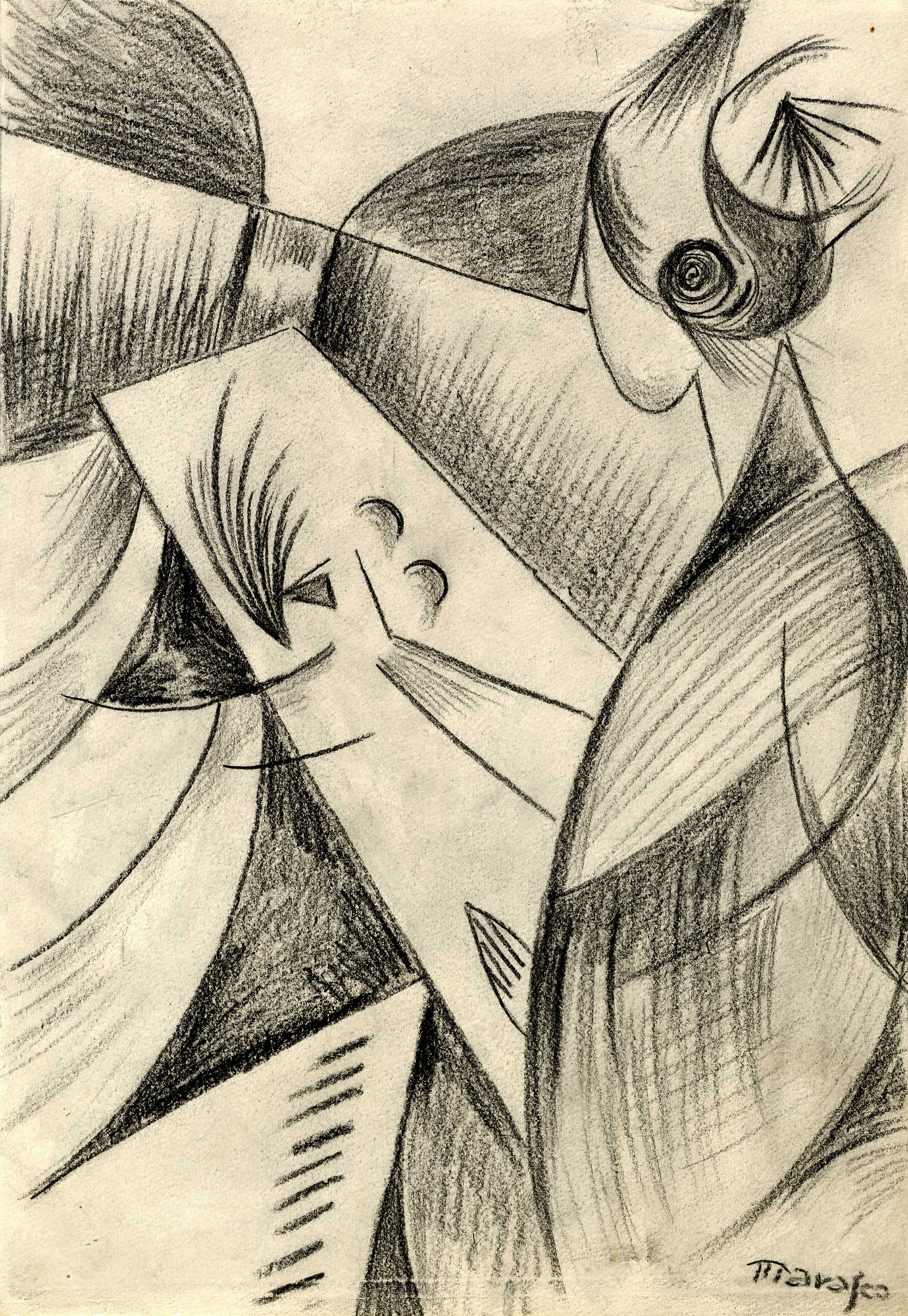 Antonio Marasco, Composizione futurista. 1929. Carboncino su carta. mm...
