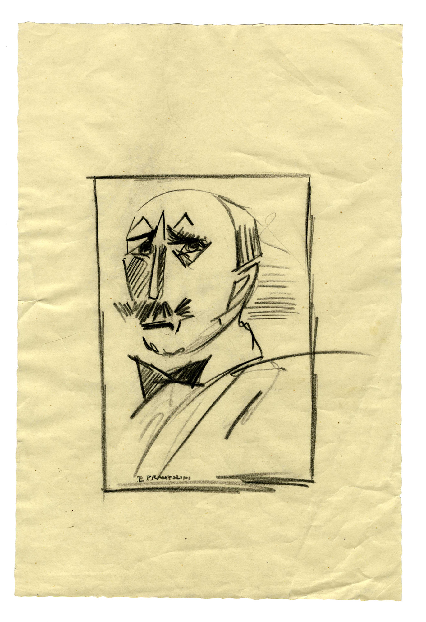 Enrico Prampolini, Ritratto di Filippo Tommaso Marinetti. Carboncino su...