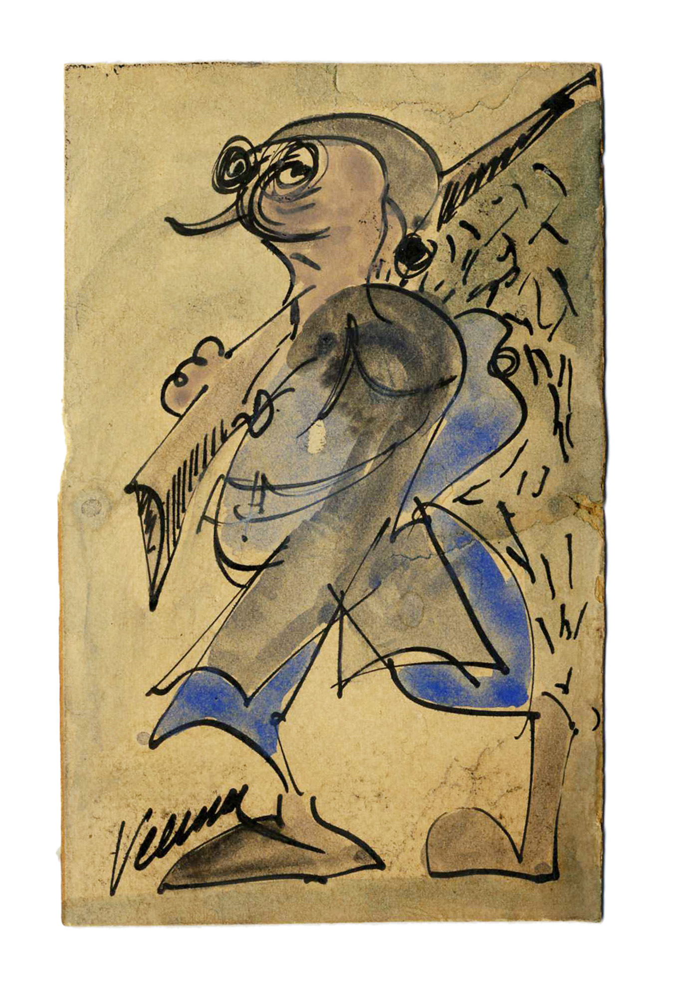 Lucio Venna Landsmann, Il cacciatore. Acquerello, penna e inchiostro di china...