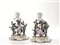 porcellana dipinta in policromia e oro. Un personaggio femminile ed uno maschile danzano su un prato realisticamente reso e circondati da tronchi fogliati e riccamente fioriti, sormontati al centro da bobeches decorata con foglie dipinte in verde e rosa. Base sagomata poggiante su quattro piedi a voluta interamente profilata in oro. Presa posteriore ad anello. Marca sul fondo, numero 166 inciso nella pasta e numero 20 dipinto in oro su entrambi i pezzi,