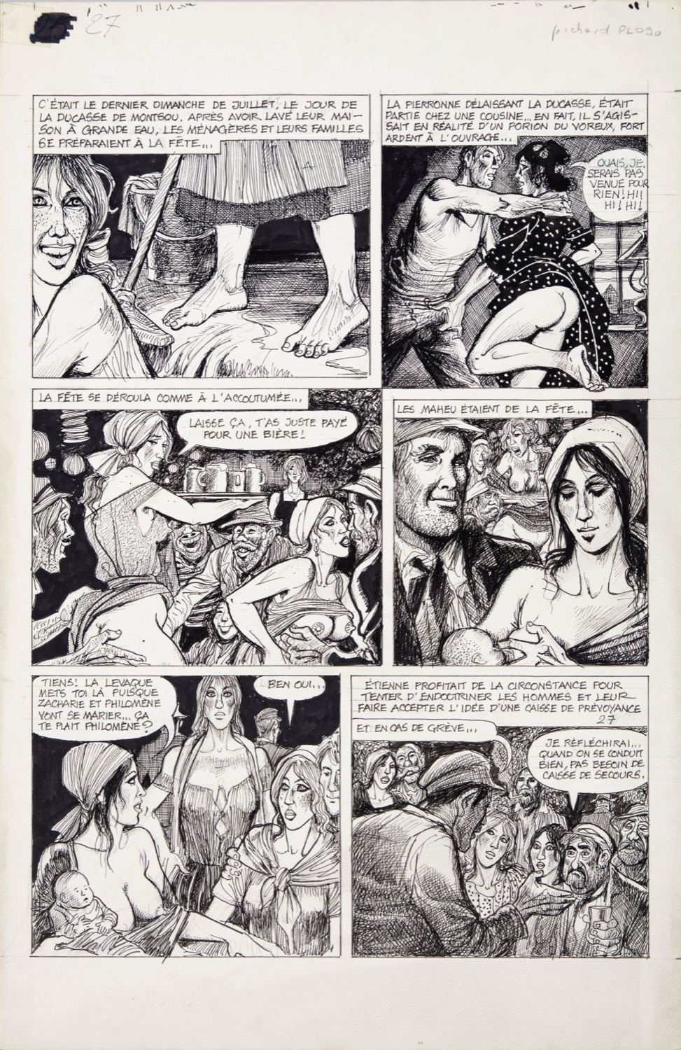 Tavola originale realizzata da Pichard per "Germinal", pubblicata a pag. 27 dalla casa editrice francese Magic Strip nel 1992. Adattamento in chiave erotica del celebre romanzo "Germinale" di Émile Zola, al quale Pichard conferisce con uno stile unico un'atmosfera sulfurea, oscena e drammatica.