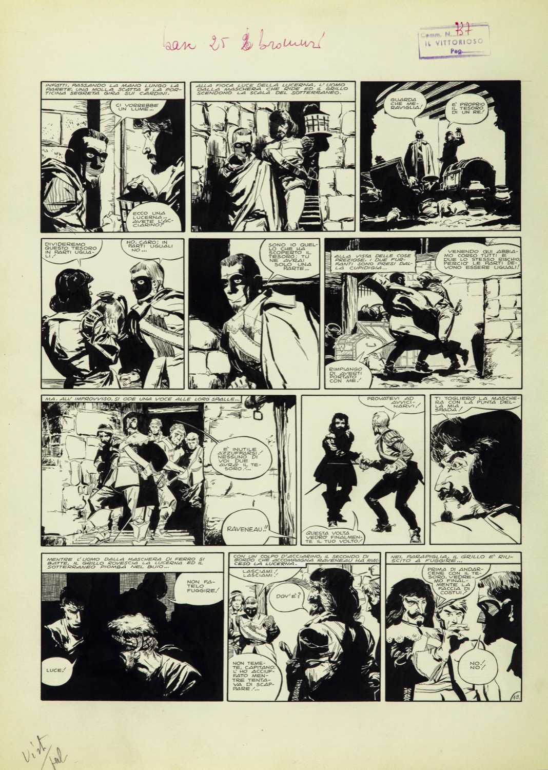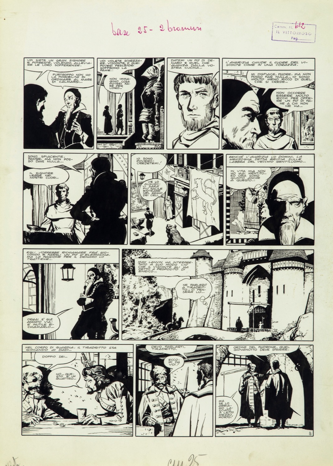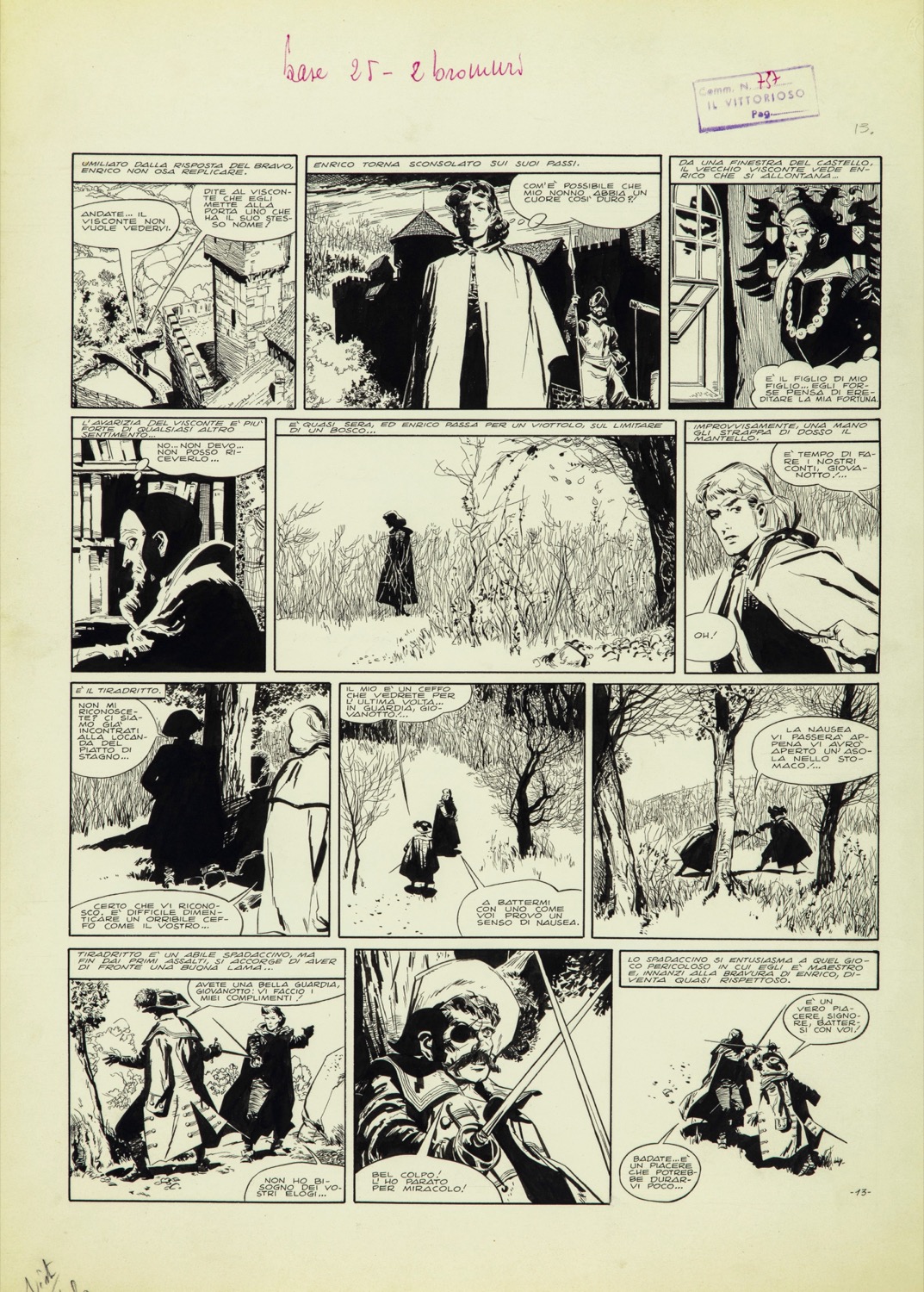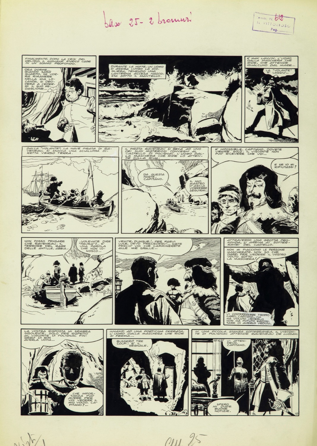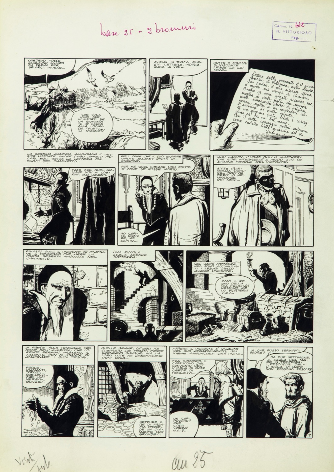 Storia completa composta da 20 tavole originali realizzate da Battalia per "L'ultimo dei Polignac", avventura cavalleresca ambientata nella Francia di fine '600, pubblicata per la prima volta sulle pagine de Il Vittorioso dal n. 28 al n. 41 del 1957. Un'opera intensa caratterizzata dal quel virtuosismo grafico che segna il primo periodo artistico di Battaglia, già proiettato verso quella maturità che lo collocherà tra i più grandi maestri del fumetto mondiale.