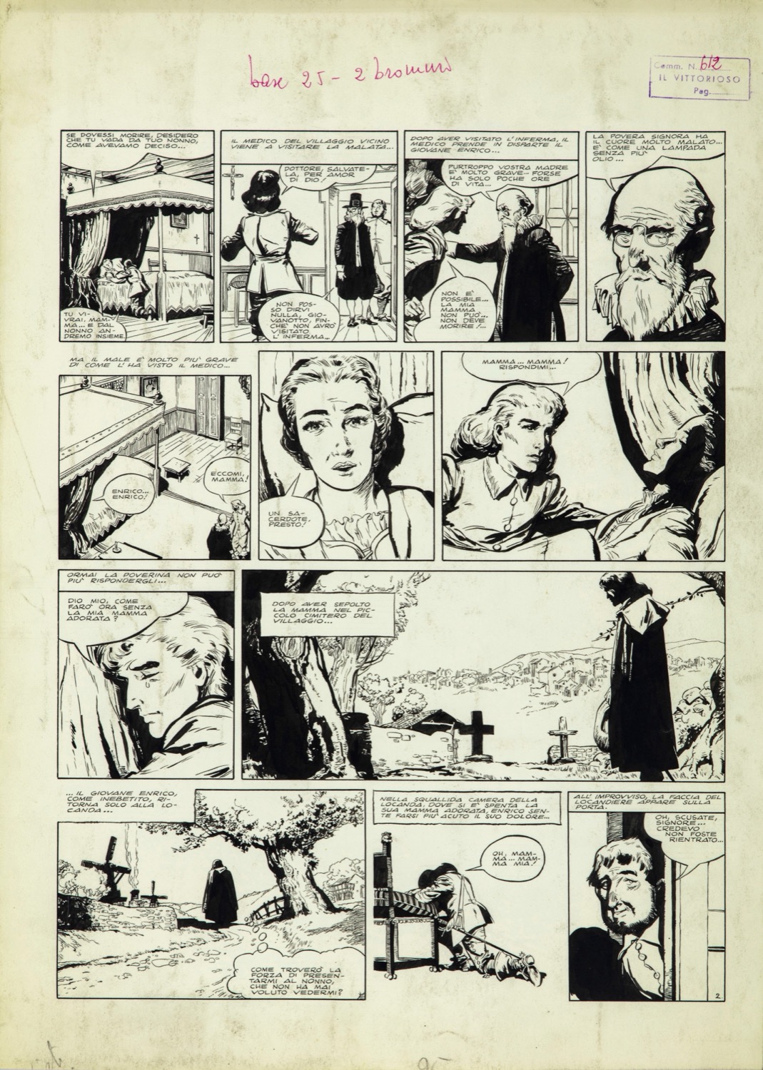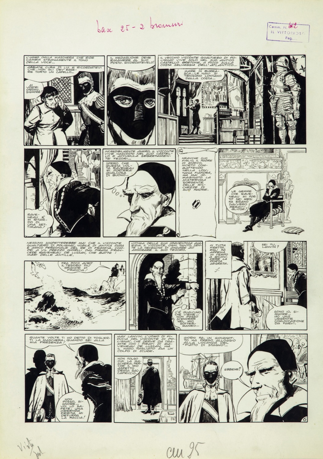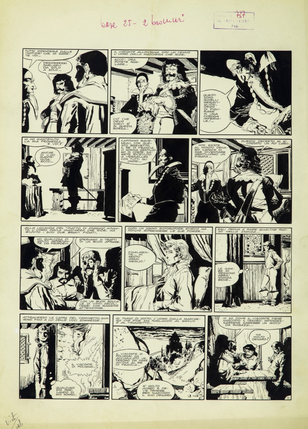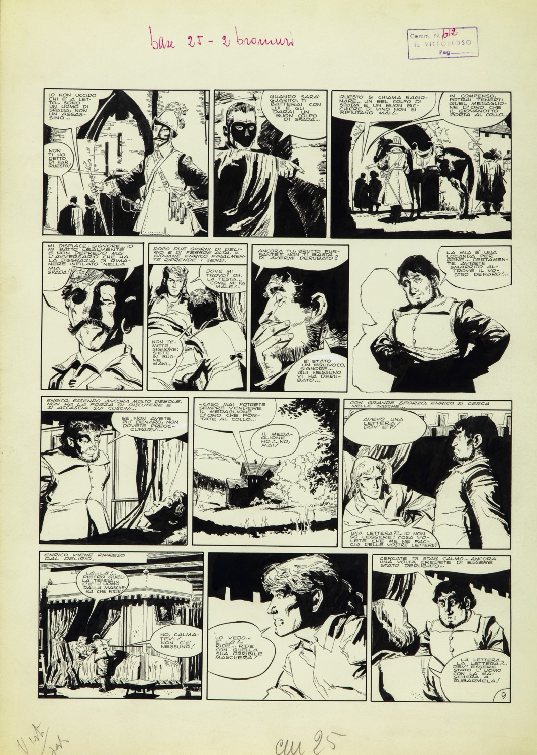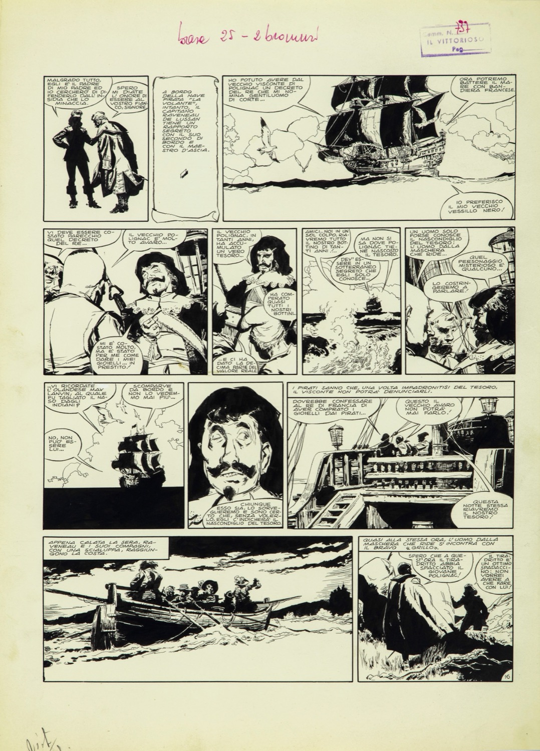 Storia completa composta da 20 tavole originali realizzate da Battalia per "L'ultimo dei Polignac", avventura cavalleresca ambientata nella Francia di fine '600, pubblicata per la prima volta sulle pagine de Il Vittorioso dal n. 28 al n. 41 del 1957. Un'opera intensa caratterizzata dal quel virtuosismo grafico che segna il primo periodo artistico di Battaglia, già proiettato verso quella maturità che lo collocherà tra i più grandi maestri del fumetto mondiale.