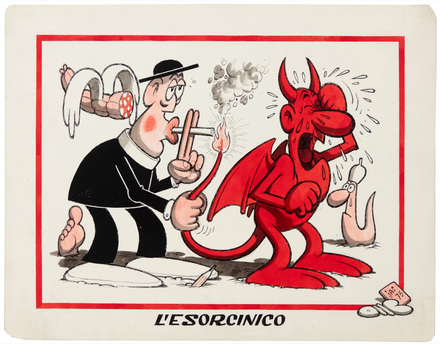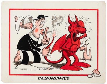Illustrazione originale realizzata da Jacovitti nel 1975. Firmata con lisca di pesce e datata.