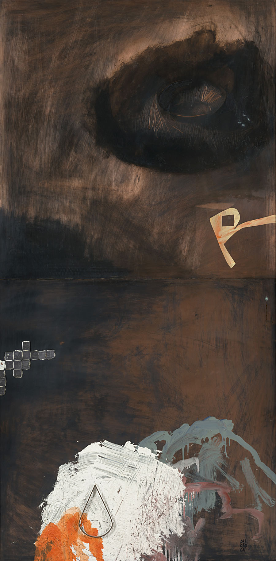 Joan Descarga (Spagna 1947) - "Senza titolo" 1988 tecnica mista e collage su rame, cm 200x100 Firmato, titolato e datato 1988 al retro Provenienza Galleria Totem, Venezia