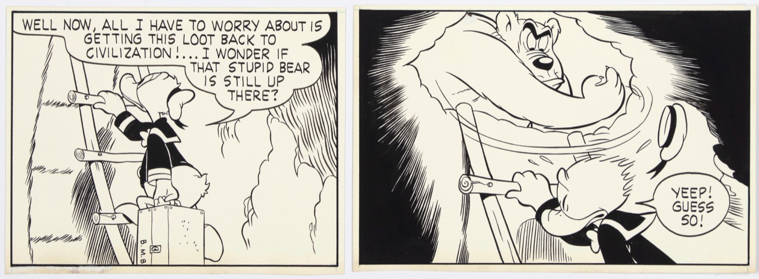 Coppia di 2 vignette originali realizzate da Murry per "Humphrey Bear and the Ranger", storia pubblicata per la prima volta negli USA su Silly Symphonies n. 9 dalla Dell nel 1958 e successivamente in Italia con il titolo "Paperino e l'orso Gelsomino" sull'Almanacco Topolino n. 37 nel 1960.