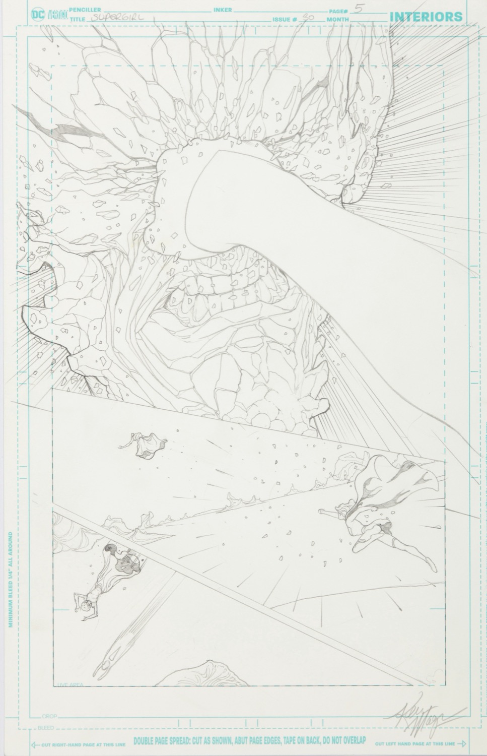 Tavola originale realizzata da Maguire per "Fractured Trust", edita su Supergirl n. 30 a pag. 5 dalla DC nel 2019. Firmata.