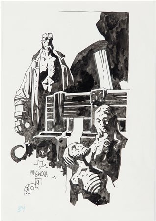 Illustrazione originale realizzata da Mignola raffigurante il suo Hellboy, pubblicata nello sketchbook "Hellboy 10th Anniversary 1994-2004: A Book of Drawings by Mike Mignola" nel 2004. Firmata e datata.