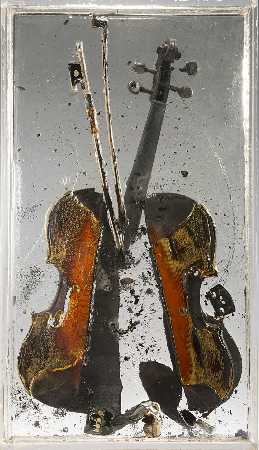 Arman (Nizza 1928 - New York 2005) - "Colère de Paganini" 2004 inclusione di violino combusto in plexiglass, cm 70x40x7 Firmato in basso a destra e numerato es. 24/100 in basso a sinistra Opera registrata presso gli Archives Denyse Durand-Ruel, Paris con il n. 8822 Opera accompagnata da certificato di autenticità rilasciato dalla Galleria Ferrero, Nizza e registrata con il n. 2005/013