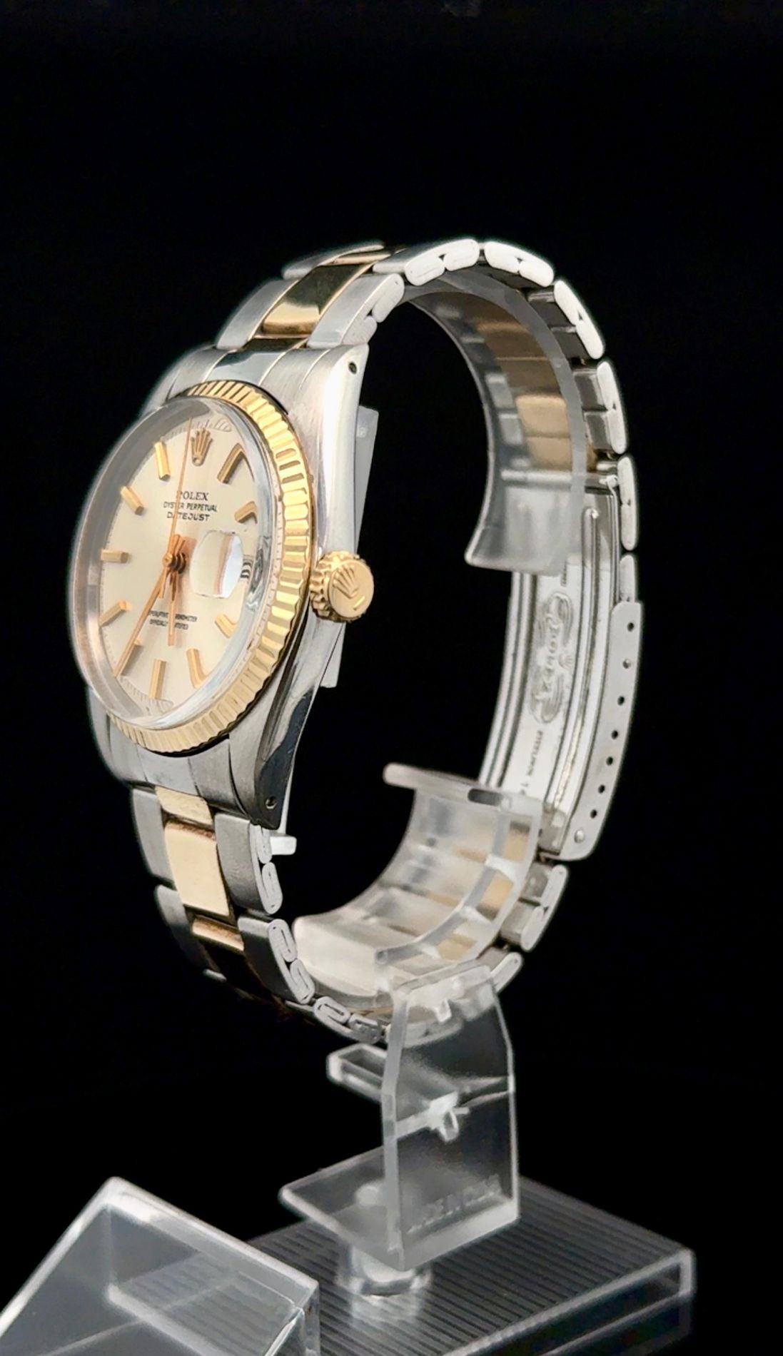 Marca Rolex Modello (Orologio) Datejust 36 Numero di referenza 1601 Anno 1973 Carica Automatico Materiale della cassa Acciaio/oro Materiale cinturino Acciaio/oro Corredo Documenti originali, no box Diametro 36 mm Vetro Plexiglas Colore cinturino Acciaio Chiusura Déployante Materiale chiusura Acciaio Funzioni Data