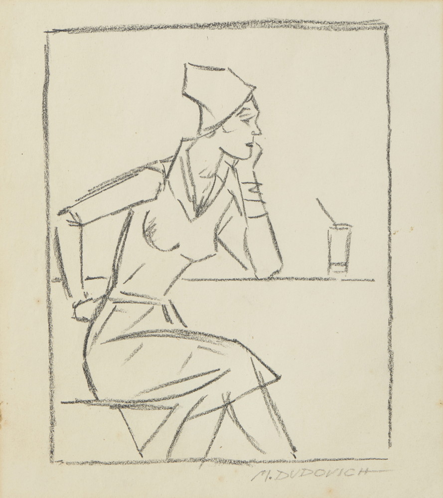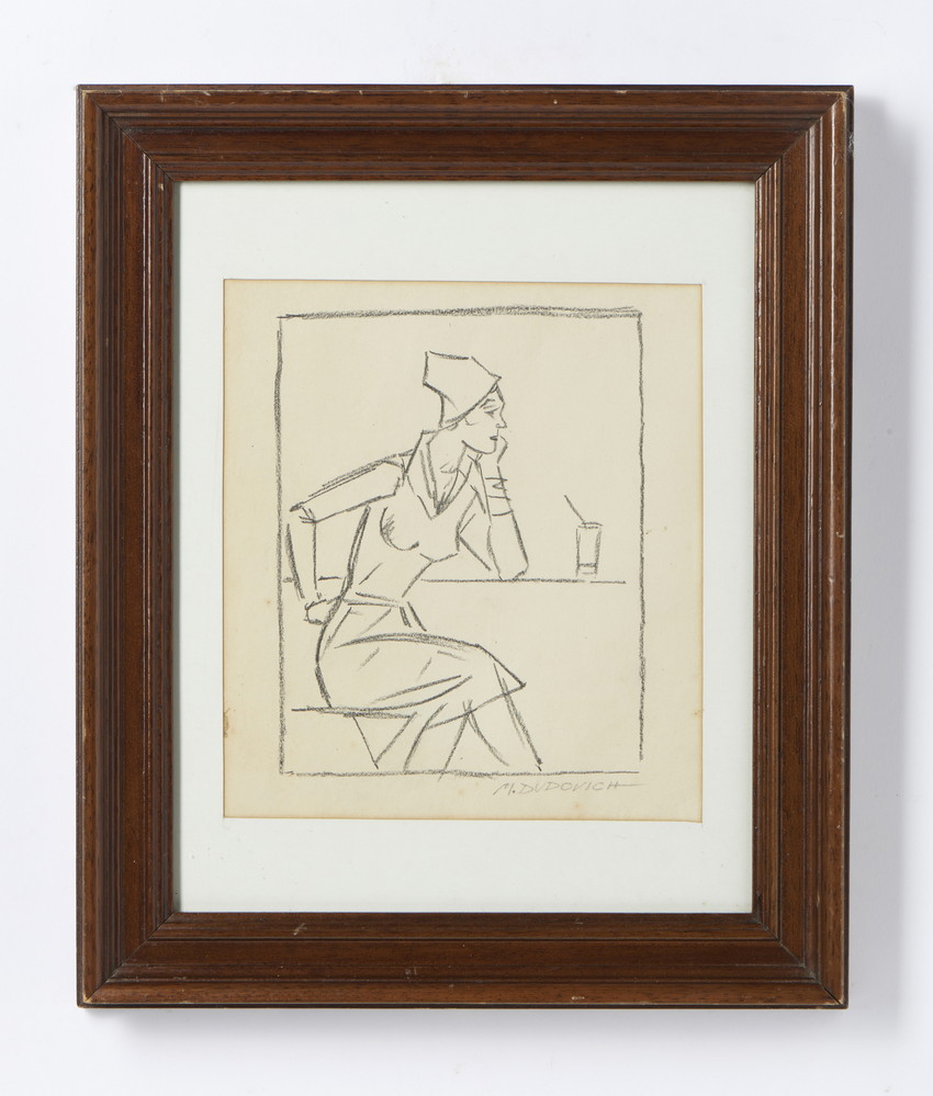 DUDOVICH MARCELLO (1878 - 1962) DONNA AL BAR. Disegno su carta. Cm 19,50 x 22,50. firma