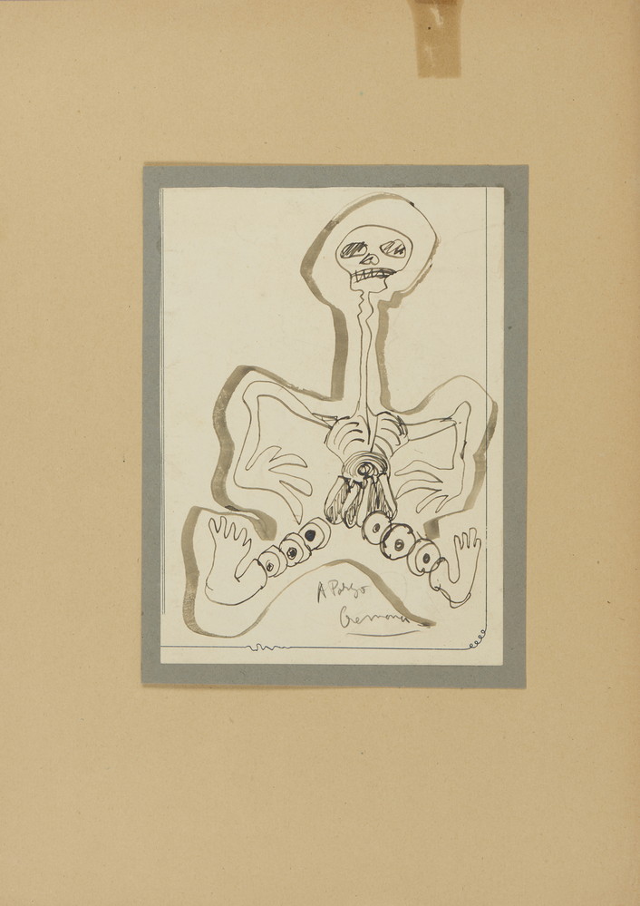 CREMONA ITALO (1905 - 1979) SCHELETRO AFFETTATO. acquarello su carta. Cm 23,50 x 32,50. firma e dedica ad personam