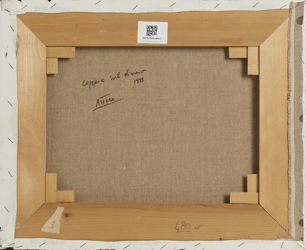 ASTORE SALVATORE (n. 1957) COPPIA SUL DIVANO. 1993. acrilico su tela. Cm 55,00 x 45,00. sul retro: titolo, firma e data