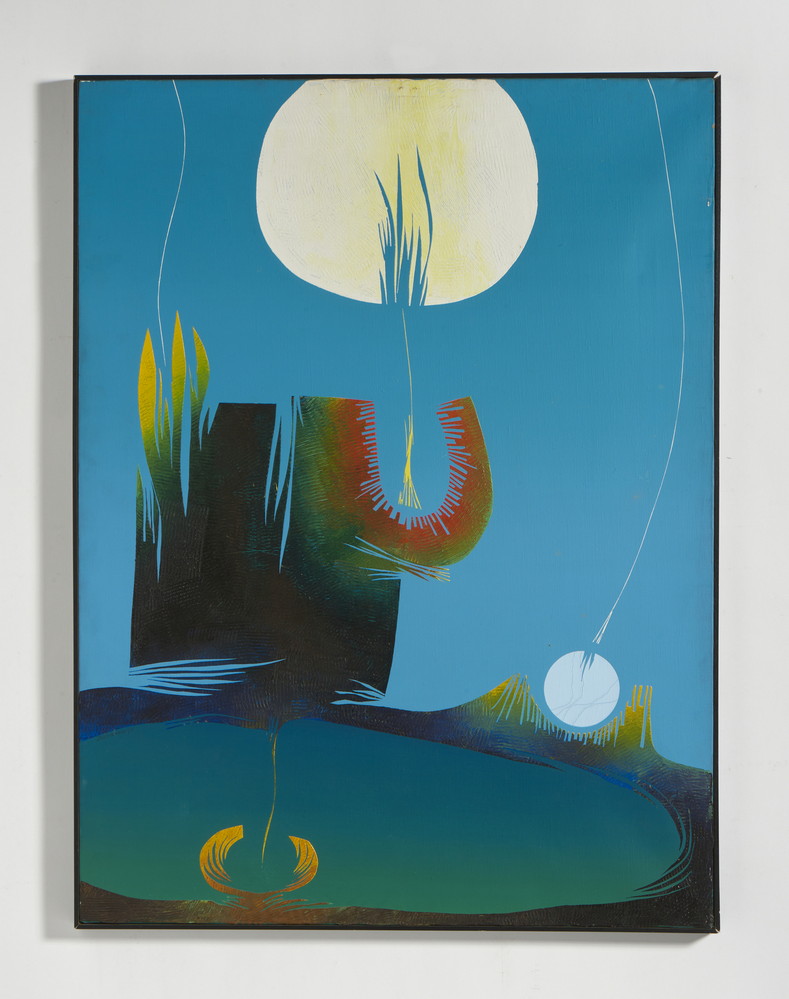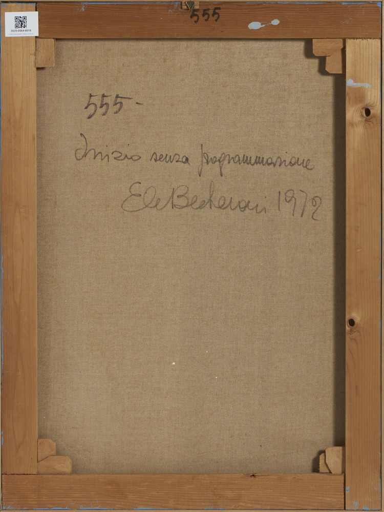 BECHERONI ELVIO (1934 - 2000) INIZIO SENZA PROGRAMMAZIONE . 1972. acrilico su tela. Cm 60,00 x 80,00. Sul retro: firma data e titolo