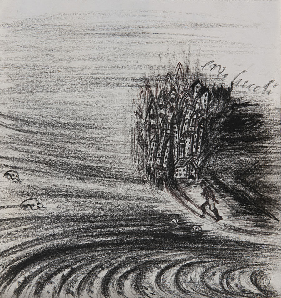 Enzo Cucchi (Morro d'Alba 1949) - "Il tempo va a spasso" 1980 matita su carta, cm 22,5x21 Firmato in alto a destra Firmato, titolato, datato 1980 e dedicato "Per Helena.." al retro Provenienza Galleria Il Capricorno, Venezia Collezione privata, Milano