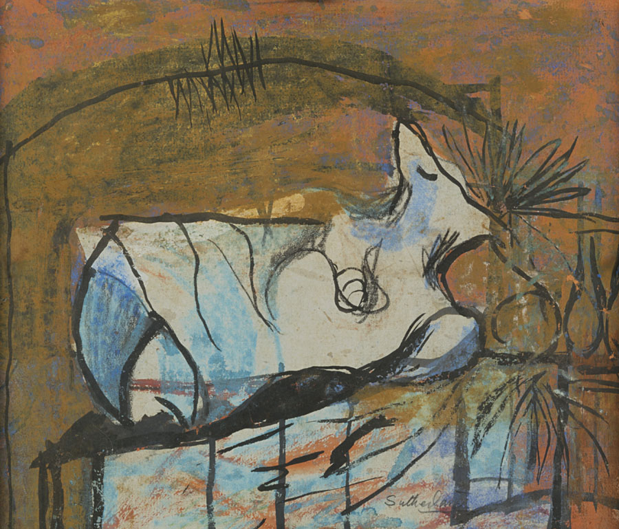 Graham Sutherland (Londra 1903 - 1980) - "Study for Reclining Stone Form" 1947 tecnica mista su carta, cm 18,5x22 Firmato in basso a destra Provenienza Galleria Bergamini, Milano Collezione privata, Milano Bibliografia "Graham Sutherland. Correspondences: selected writings on art" The Graham and Kathleen Sutherland Foundation, 1982, p. 159 n. 35 ill. Opera registrata presso l'Archivio delle Opere di Graham Sutherland a cura della Galleria Ruggerini & Zonca, Milano con il n. 31476 Opera accompagnata da certificato di autenticità su fotografia rilasciato da K. Sutherland in data 13/8/1980