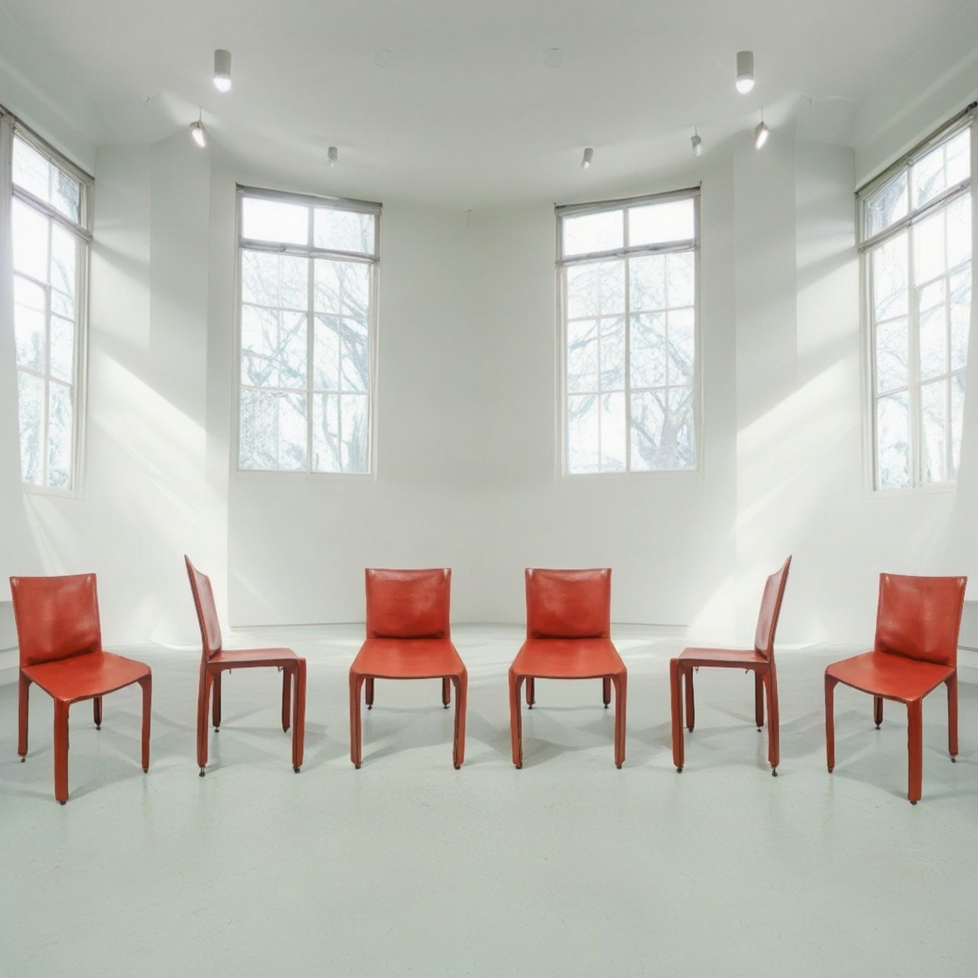 Mario Bellini per Cassina - Sei sedie modello Cab in cuoio rosso cognac