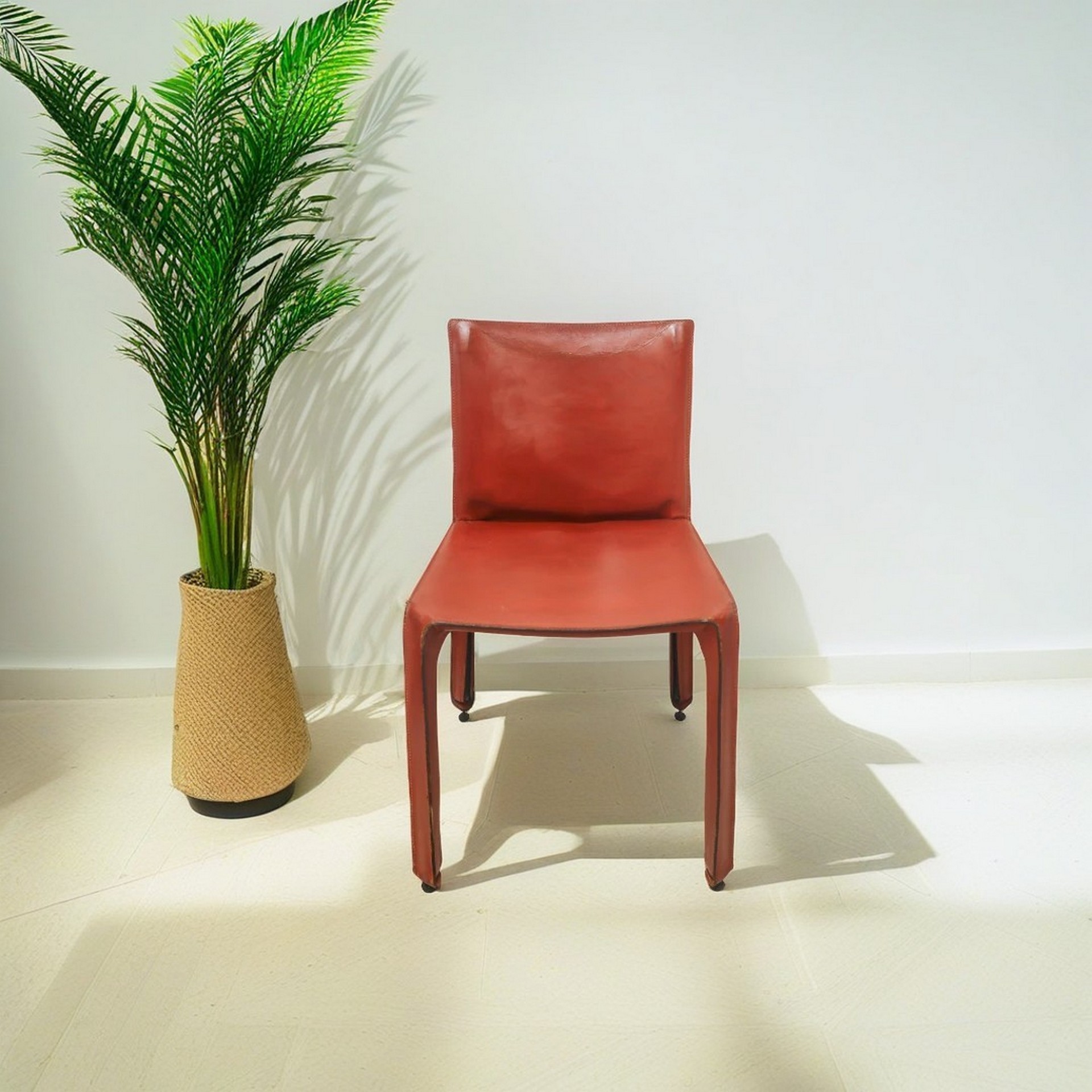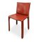 Mario Bellini per Cassina - Sei sedie modello Cab in cuoio rosso cognac L'iconica sedia del design italiano è composta da uno scheletro di acciaio tubolare rivestita da una copertura in cuoio che forma il corpo della sedia. Mancanza 4 piolini.L'iconica sedia del design italiano è composta da uno scheletro di acciaio tubolare rivestita da una copertura in cuoio che forma il corpo della sedia. Mancanza 4 piolini.