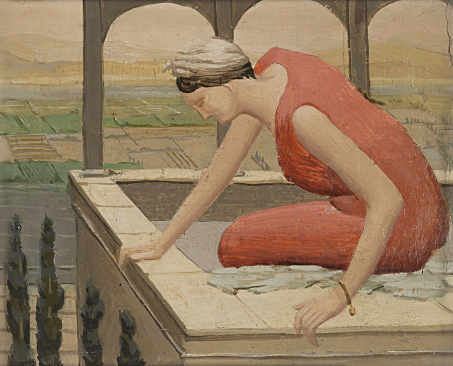 Edita Broglio (Smiltene 1886 - Roma 1977) - "Dove sei?" 1954 olio su tavola, cm 20x24 Esposizioni "Edita Walterowna Broglio" Palazzo Ricci, Macerata 15 giugno - 29 settembre 1991, cat. n. 53 ill. a colori L'opera è lo studio per il dipinto "Dove sei?" 1955-1956 illustrato al n. 60 nel catalogo della mostra Antologica tenutasi a Palazzo Ricci, Macerata 1991