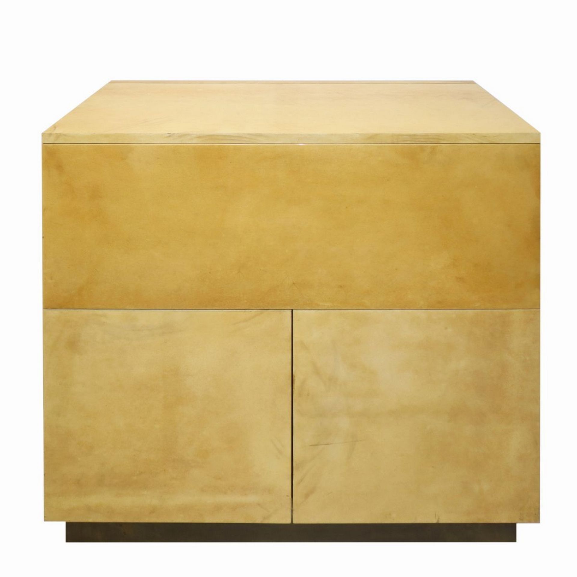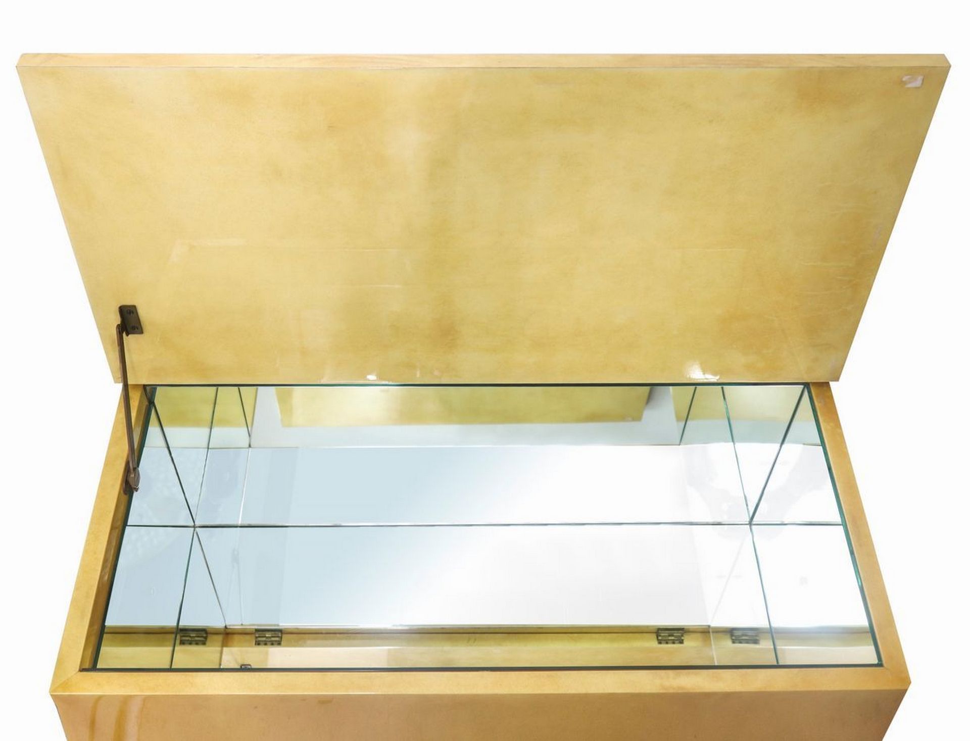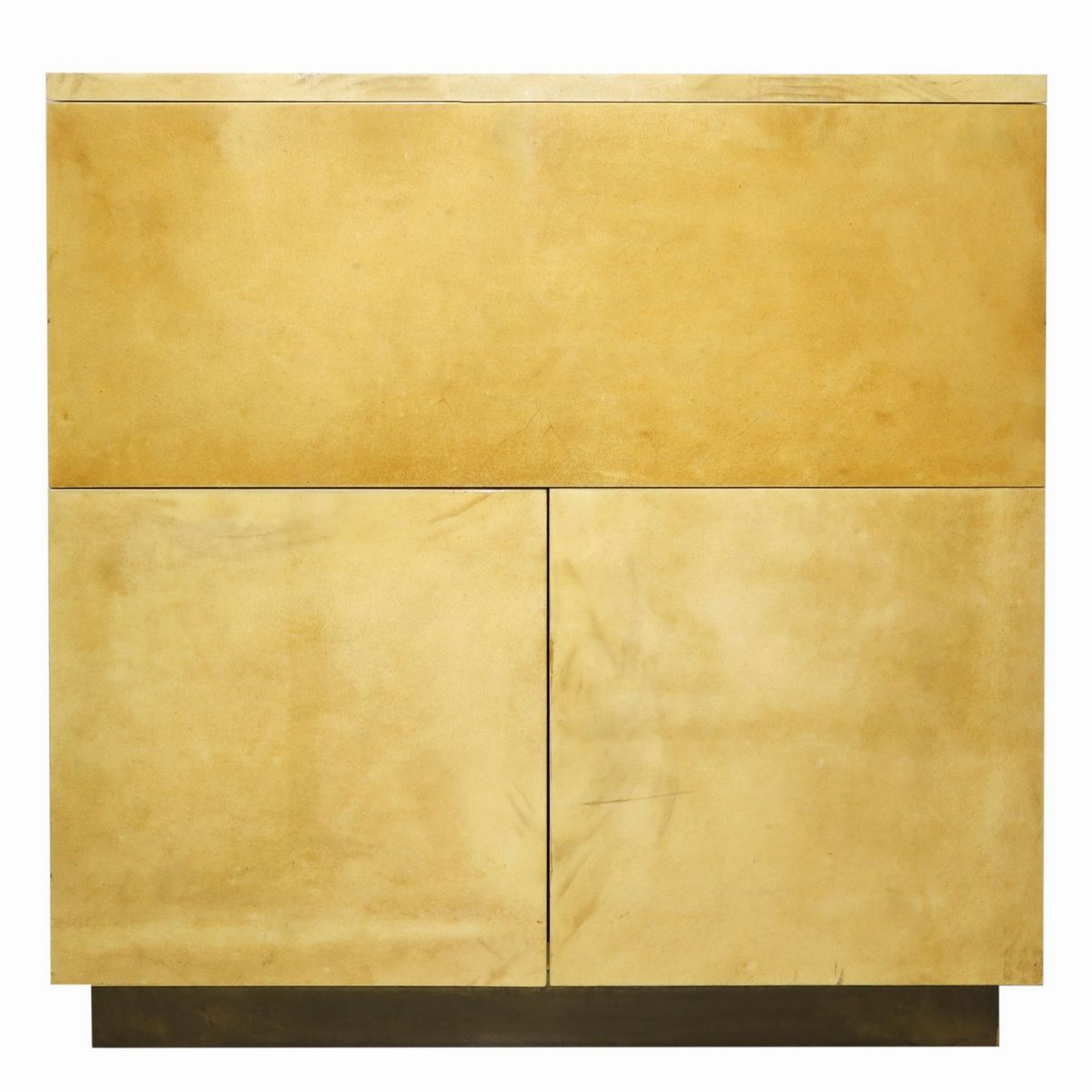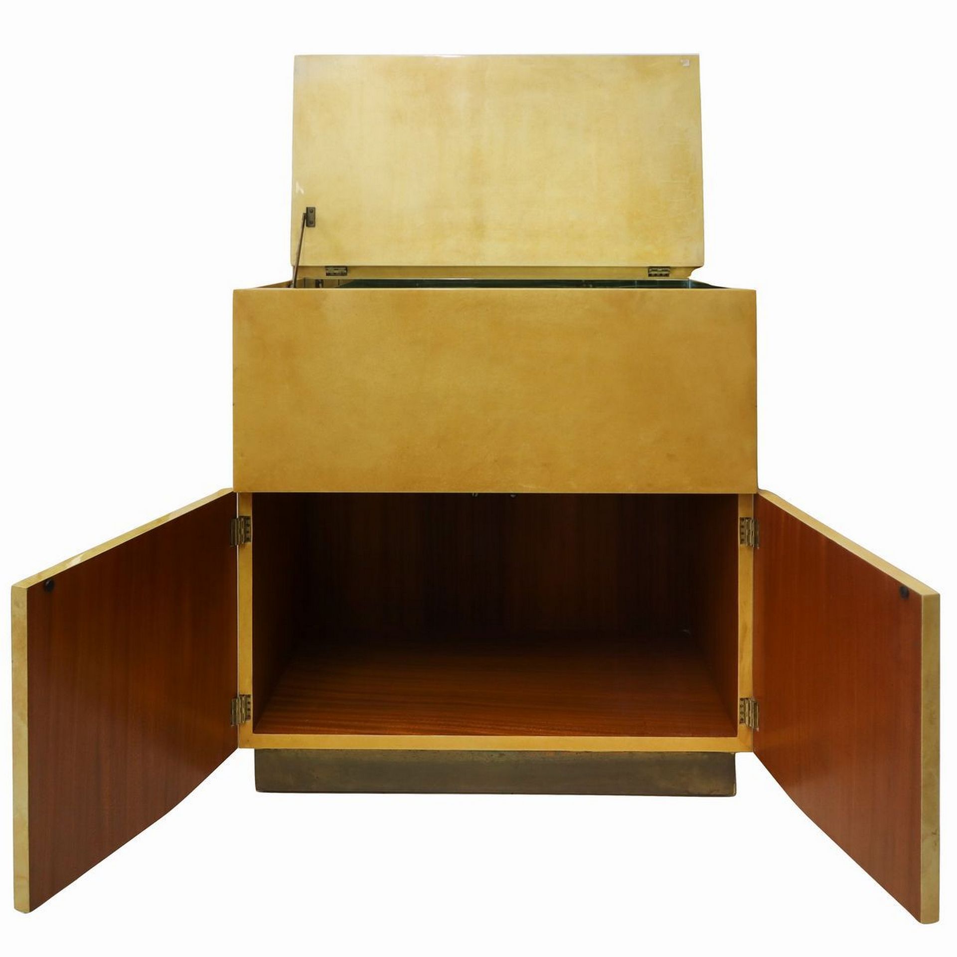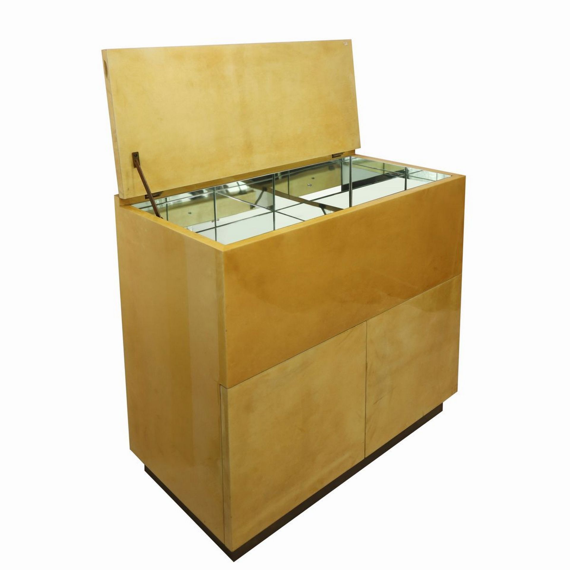 Aldo Tura (1909 - 1963) - Mobile bar in pergamena H 91 x L 90 x P 45 Apertura a ribalta con interno specchiata, parte inferiore con due anteApertura a ribalta con interno specchiata, parte inferiore con due ante