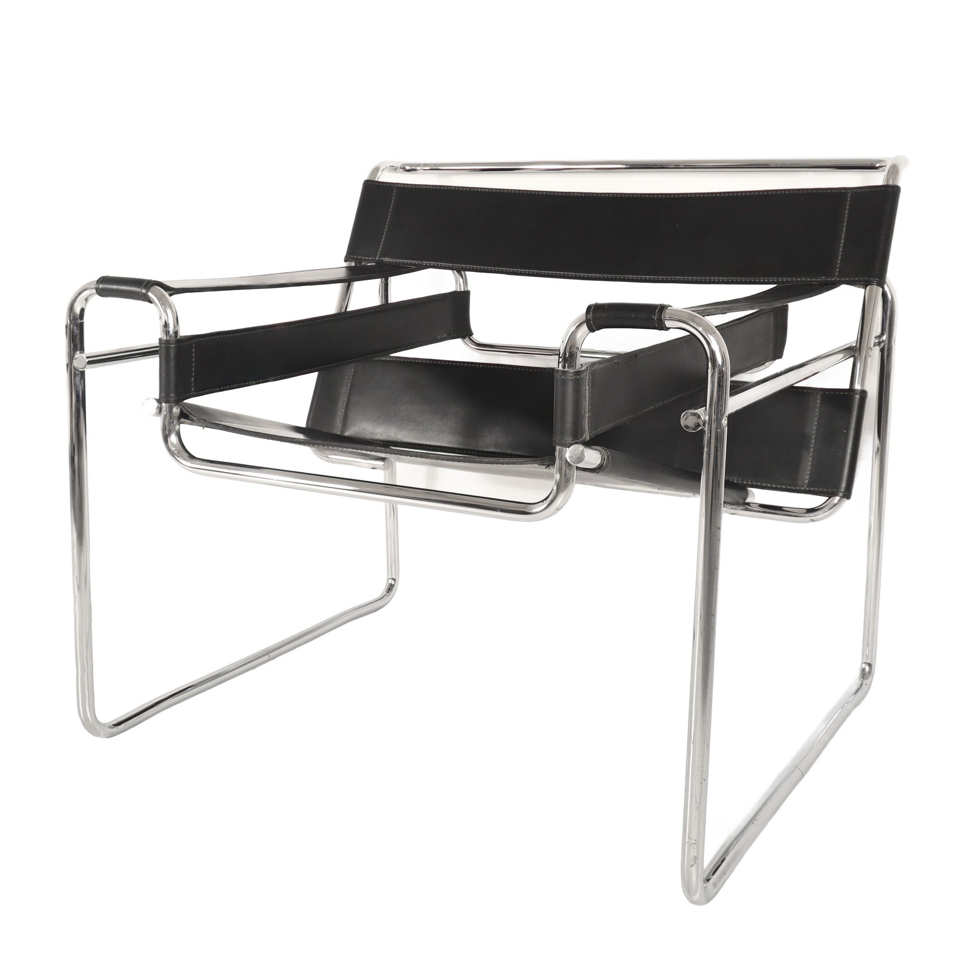 Marcel Breuer per Gavina - Poltrona Vassily B3 in acciaio e cuoio nero, 1972