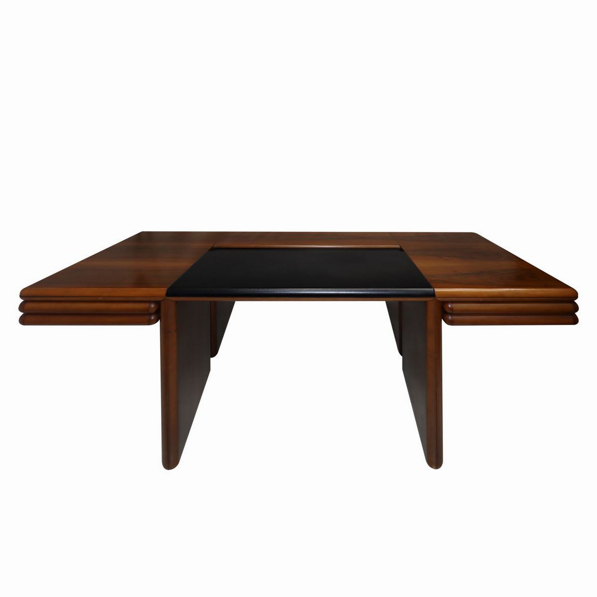 Hans Von Klier (stile di) (Děčín 07/02/2023 - Děčín 2000) - Scrivania in legno di rovere H cm 73 x L cm 161 x P 83 cm Struttura lastronata, inserti in pelle, cassettiere ai lati, porta oggetti integrato nel piano. Segni d'uso.Struttura lastronata, inserti in pelle, cassettiere ai lati, porta oggetti integrato nel piano. Segni d'uso.