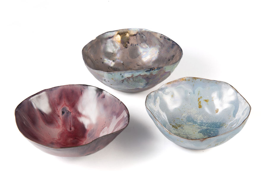 Fausto Melotti (Rovereto 1901 - Milano 1986) - "Coppette" 1950 ca tre ceramiche smaltate policrome, diam. cm 14 ca ciascuna Firmate con sette punti sotto la base (3) Tutte le opere sono accompagnate da certificato di autenticità su fotografia rilasciato dall'Archivio Fausto Melotti, Milano in data 24/10/2014 con i numeri CT 459, CT 460, CT 461