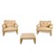 Prod. B & B Italia Afra e Tobia Scarpa per - Coppia di poltrone con tappezzeria in seta avorio e poggiapiedi